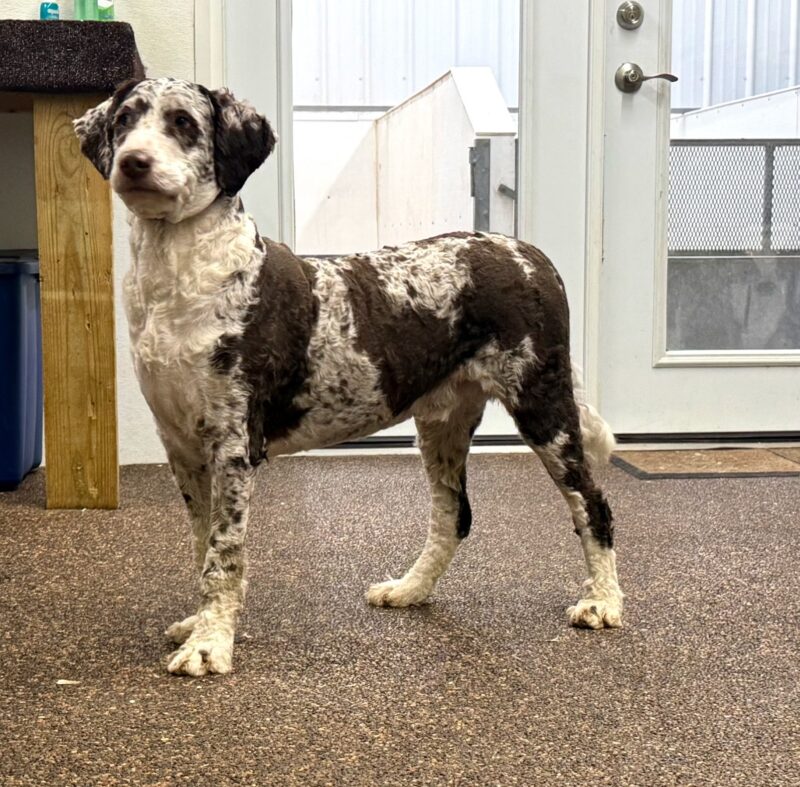 Haven is a AKC Merle Tri Poodle. She weighs 38lbs. Haven will produce F1 Bernedoodles