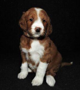 This 201 week old puppy is a F1 mini English Goldendoodle.
