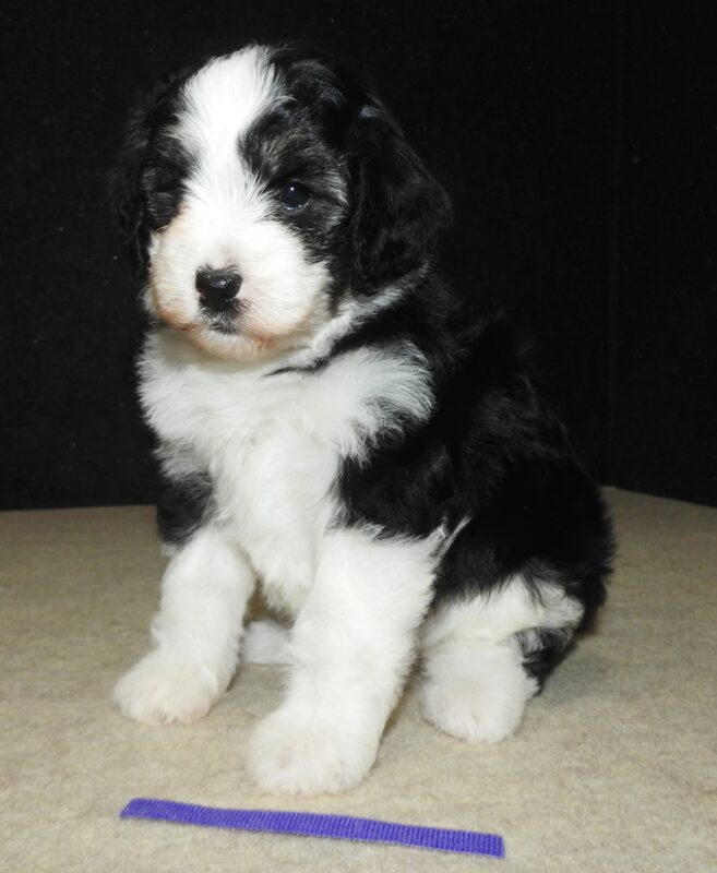and will produce F1b Mini Bernedoodle puppies in the 20-35 lb. range when bred to a miniature poodle. She is highly intelligent and has a want
