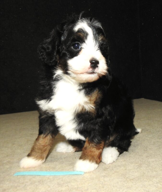 and will produce F1b Mini Bernedoodle puppies in the 20-35 lb. range when bred to a miniature poodle. She is highly intelligent and has a want