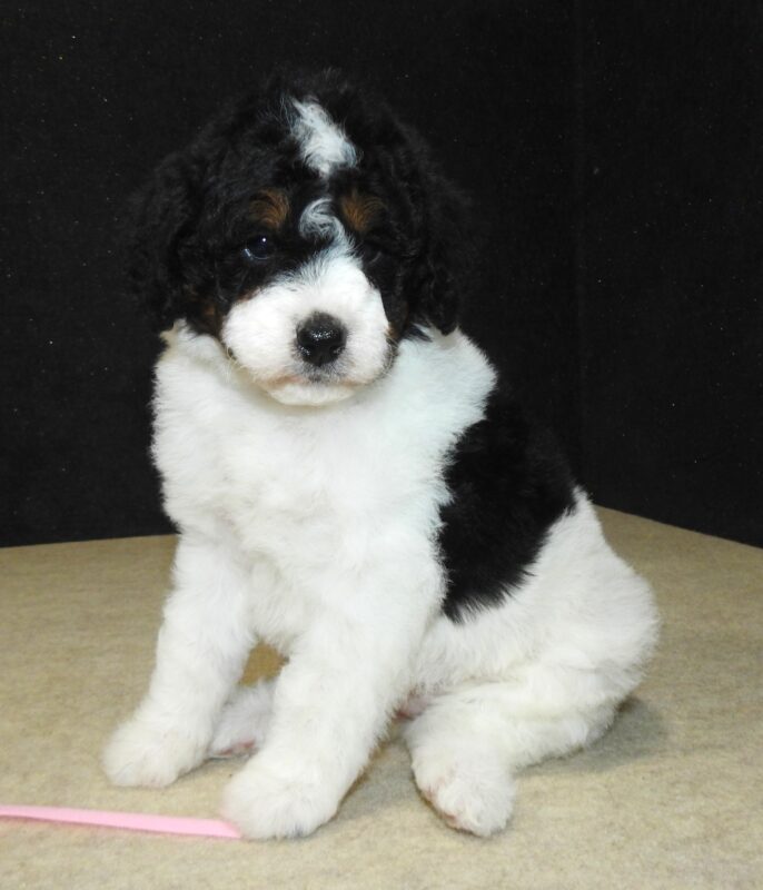 and will produce F1b Mini Bernedoodle puppies in the 20-35 lb. range when bred to a miniature poodle. She is highly intelligent and has a want