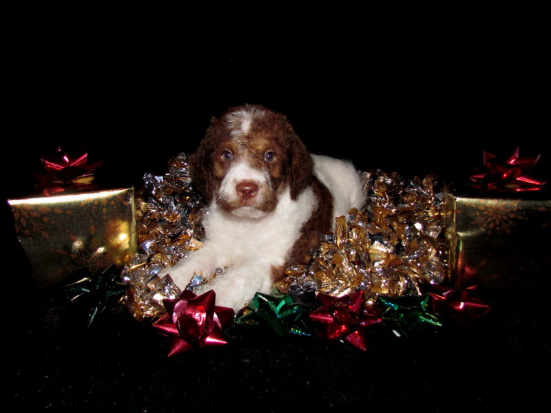 I am an Australian multigen Labradoodle and will sport a fleece type low to non-shedding soft curly coat! I will mature out around 35-45# when mature, I will be a quick learner and will make a great family companion!!    Reserve me now, so i can become an intricate part of your family and make someone a very Merry X-mas!