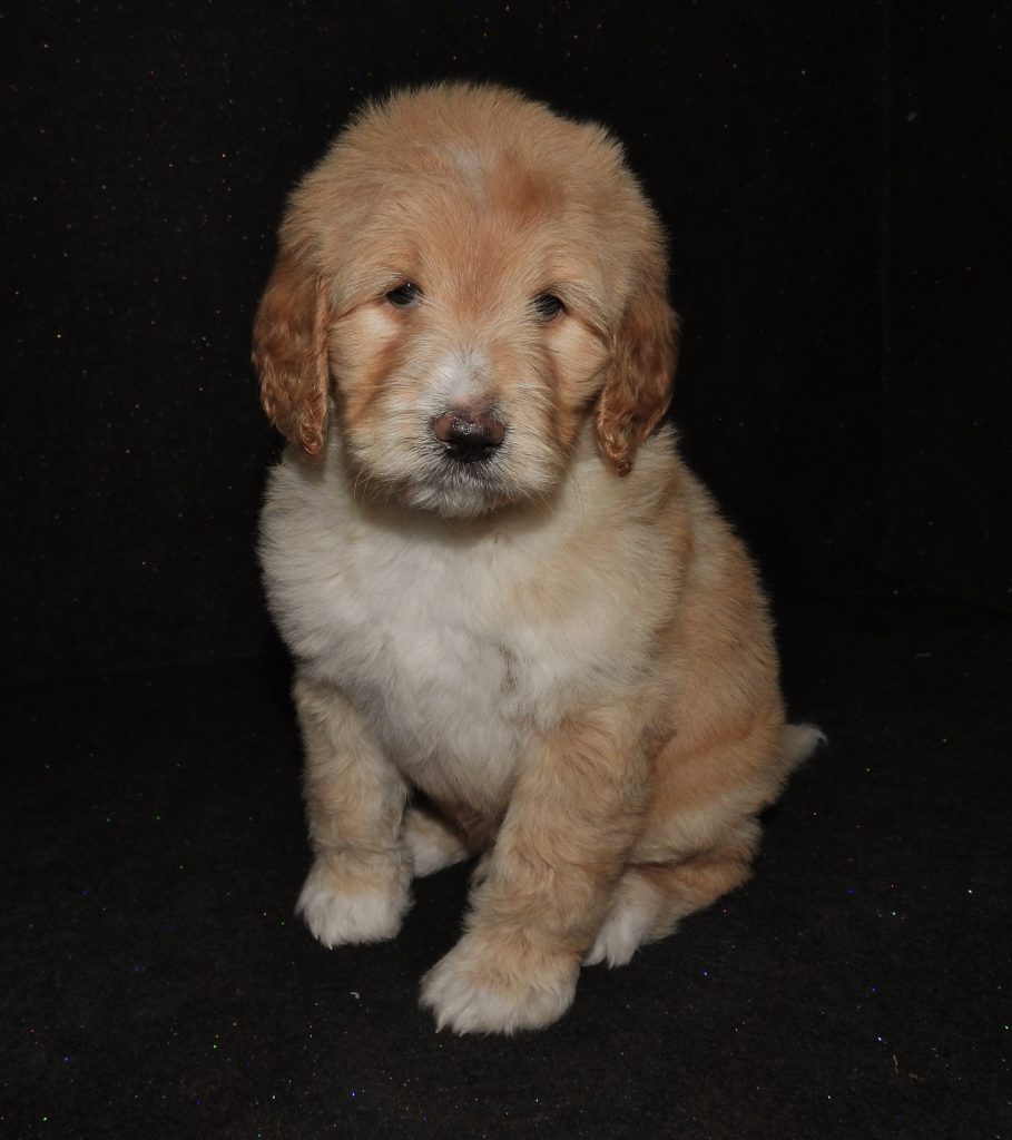 Bella is an F-1 Labradoodle out of one of our chocolate Lab females and our retired white Standard Poodle -Parker. She is a retrieving nut and loves the water! Her pups have been mixed colors when couples with Remington- chocolate, creames, yellow, and blacks. Coats have varied from very curly to light semi curly!! Her pups have been receiving great reviews and you can check them out on our facebook link under the photos section! Look for bellas pups to be eyecatchers and quick trainers!