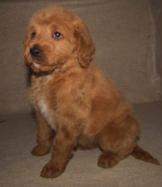 She is party factored and out of a Akc yellow Lab female and a Chocolate and white Party colored male Standard Poodle! She weighs 55# and is a retrieving nut also!! She loves the water. Check out her previous pups on our facebook link under the photo section! She has been producing mostly chocolate pups with a few party colored pups and an occassional light colored pup! pups have been curly coated to semi -curly fleece type coats all receiving excellent reviews!! Look for her pups to sell out fast she has been very popular!
