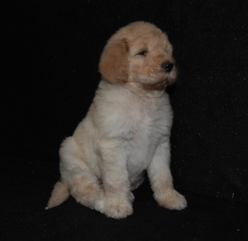 Bella is an F-1 Labradoodle out of one of our chocolate Lab females and our retired white Standard Poodle -Parker. She is a retrieving nut and loves the water! Her pups have been mixed colors when couples with Remington- chocolate, creames, yellow, and blacks. Coats have varied from very curly to light semi curly!! Her pups have been receiving great reviews and you can check them out on our facebook link under the photos section! Look for bellas pups to be eyecatchers and quick trainers!