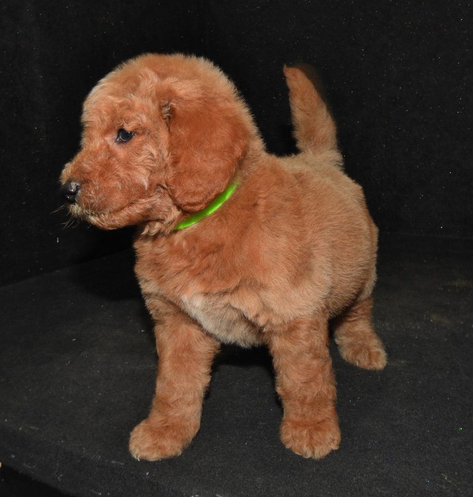 Introducing Cabella an F1 (50-50) Labradoodle , She sports an awesome temperament most breeders would die for!! She has prominently yellow or light colors in her sire pedigree and reds in her dams pedigree. Cabella weighs in at 75# and sports a semi curly fleece coat . We are very excited about this young female and what she can bring to our program!! I look for her pups to be very intelligent, fast learners, well made, with superior coats and a temperament that won’t disappoint!! Look for her pups to be show stoppers!!