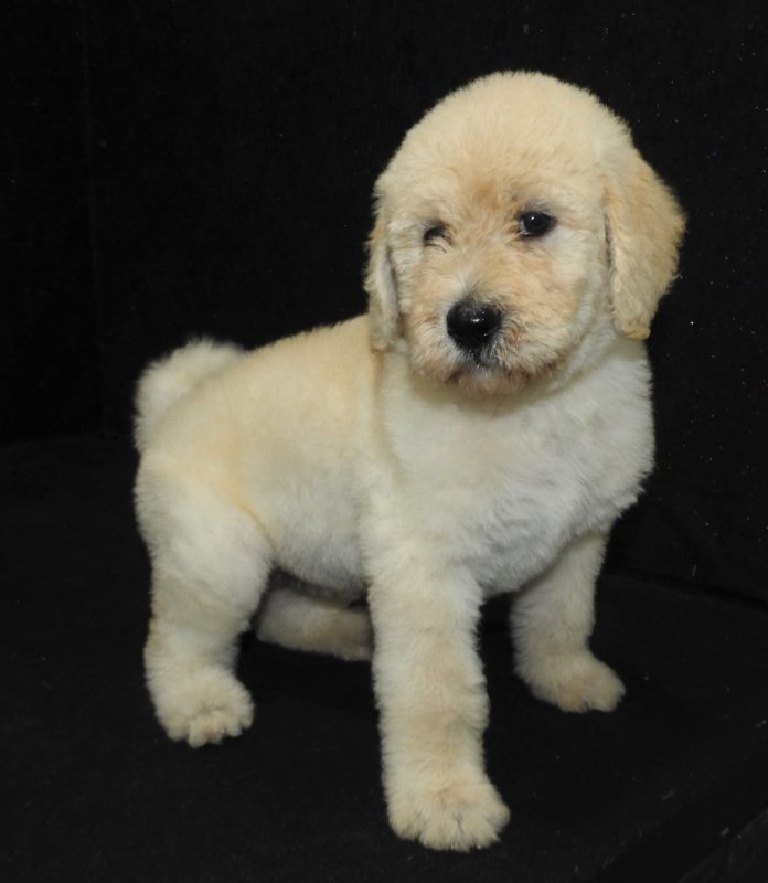 Gage is a Moyen Poodle a cross between a Standard Poodle and a Miniature Poodle Gage was put in are program to downsize the dogs! He weighs 40# and his pups should weigh approx. 35-60# and his puppies would be classified as large miniatures or a medium size dog! We are very excited about Gage as he is very Intelligent and sports an awesome temperament. Look for Gage’s pups to be very quick to train, eyecatchers for sure and producing a medium sized dog! We look for Gage to become one of our most popular studs!!