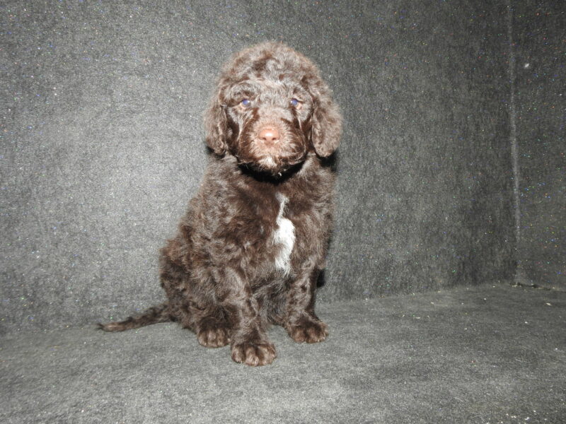 Cocoa is an F1 American Goldendoodle and I have added her to are program for her rare color(Chocolate) as time progresses you will see more color phases of Goldendoodles courtesy of the broad color base the Poodles offer. these colors are going to absolutely stunning. We will be able to offer Brown-White and Black – White party colored, Chocolate with white toes-chest, Black with white toes-chest, and solid Chocolates and Blacks, these color phases are going to gorgeous!! Couple the color with her stunning personality and her solid conformation and watch out!! – Show stoppers for sure!! Cocoa weighs in at 72#.