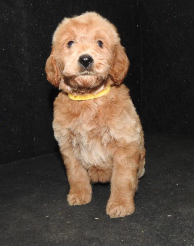 Introducing Cabella an F1 (50-50) Labradoodle , She sports an awesome temperament most breeders would die for!! She has prominently yellow or light colors in her sire pedigree and reds in her dams pedigree. Cabella weighs in at 75# and sports a semi curly fleece coat . We are very excited about this young female and what she can bring to our program!! I look for her pups to be very intelligent, fast learners, well made, with superior coats and a temperament that won’t disappoint!! Look for her pups to be show stoppers!!
