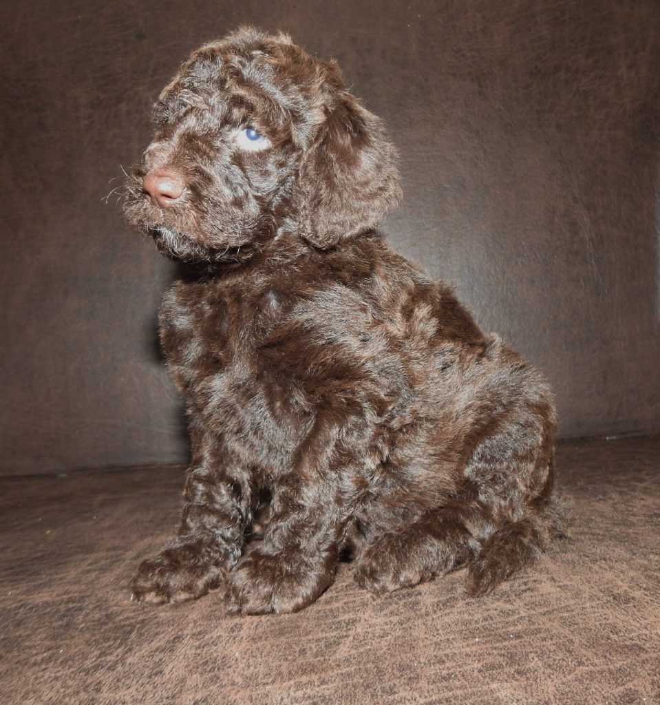 F1b Goldendoodle(American strain) Standard size -males will range 75-90#, females 60-75#.  the pups will sport low-to non-shedding fleece style coats,  there temperament will be very outgoing with an eager to please type attitude!! look for these pups to be highly intelligent and fast to train. the chocolate color comes from the poodles background and is rare in the goldendoodle look for these pups to draw alot of attention when out for walks do to there charming personality and there awesome looks!! reserve yours today with a $200.00 deposit and a puppy application.