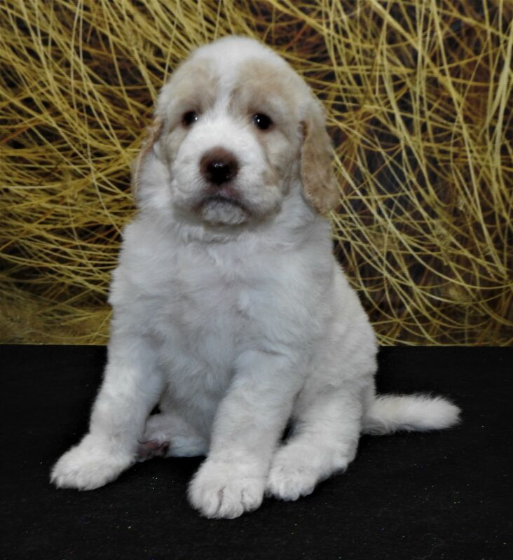 Gage is a Moyen Poodle a cross between a Standard Poodle and a Miniature Poodle Gage was put in are program to downsize the dogs! He weighs 40# and his pups should weigh approx. 35-60# and his puppies would be classified as large miniatures or a medium size dog! We are very excited about Gage as he is very Intelligent and sports an awesome temperament. Look for Gage’s pups to be very quick to train, eyecatchers for sure and producing a medium sized dog! We look for Gage to become one of our most popular studs!!