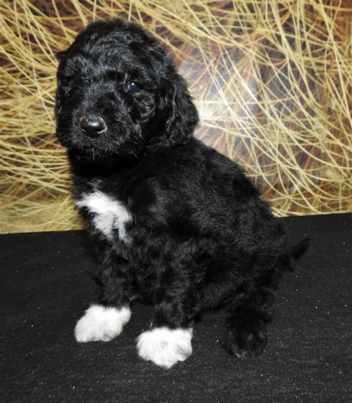 Gage is a Moyen Poodle a cross between a Standard Poodle and a Miniature Poodle Gage was put in are program to downsize the dogs! He weighs 40# and his pups should weigh approx. 35-60# and his puppies would be classified as large miniatures or a medium size dog! We are very excited about Gage as he is very Intelligent and sports an awesome temperament. Look for Gage’s pups to be very quick to train, eyecatchers for sure and producing a medium sized dog! We look for Gage to become one of our most popular studs!!