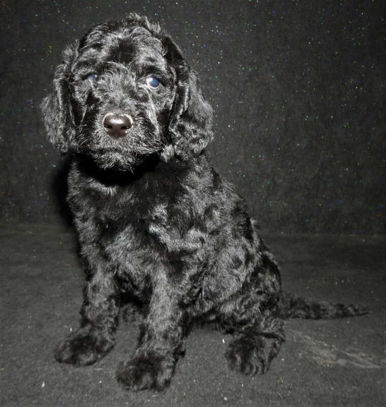 Gage is a Moyen Poodle a cross between a Standard Poodle and a Miniature Poodle Gage was put in are program to downsize the dogs! He weighs 40# and his pups should weigh approx. 35-60# and his puppies would be classified as large miniatures or a medium size dog! We are very excited about Gage as he is very Intelligent and sports an awesome temperament. Look for Gage’s pups to be very quick to train, eyecatchers for sure and producing a medium sized dog! We look for Gage to become one of our most popular studs!!