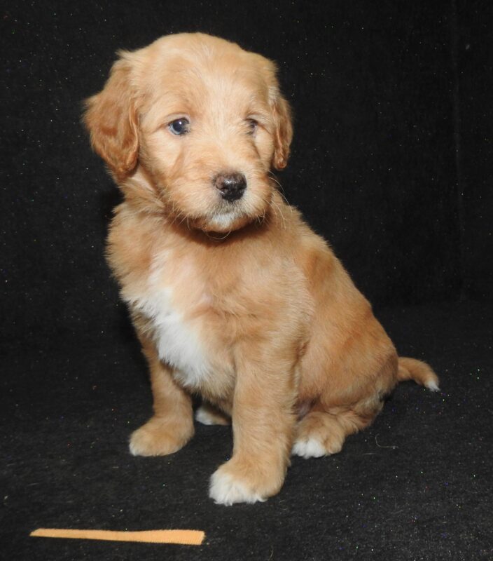 Dutchess is an F1 Blue Merle Goldendoodle that is very rare in the Goldendoodle world. She will produce F1b Goldendoodles in various color phases depending on the color phase of the stud we use to breed her with. She is highly intelligent and sports an awesome temperament ! We are excited to see what she will add to our program!!
