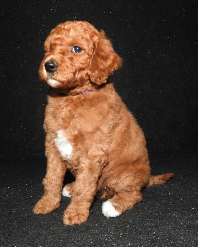 Ginger is a F1 American goldendoodle that we are very excited about!! She will produce F1b non shedding goldendoodles. She is parti-factored and has 4 white socks & chest which should make for very nicely marked puppies. She has an awesome, easy going temperament, highly intelligent, so look for her puppies to be very quick to train and eyecatchers when out in the public. She weighs approx 47 lbs.