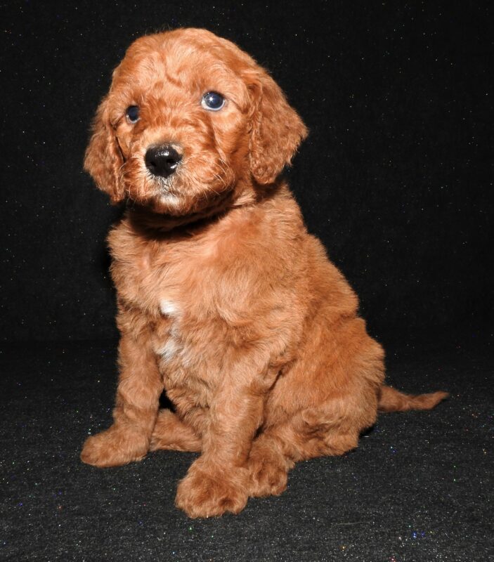 Ginger is a F1 American goldendoodle that we are very excited about!! She will produce F1b non shedding goldendoodles. She is parti-factored and has 4 white socks & chest which should make for very nicely marked puppies. She has an awesome, easy going temperament, highly intelligent, so look for her puppies to be very quick to train and eyecatchers when out in the public. She weighs approx 47 lbs.
