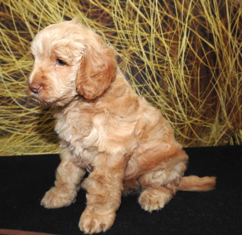 We are excited to add Harper to our Labradoodle program! She brings into the program her awesome apricot color coat and her outgoing lovable personality and temperament. look for her pups to be show stoppers and draw a lot of attention when on walks out in the public. Harper weighs approx. 65lbs