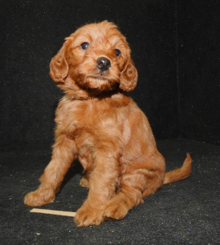 Kimber is a red F1 Labradoodle that we are very excited to add to our program. She should produce beautiful Red F1b Labradoodles with an awesome temperament. She is very intelligent!! Kimber weighs in at 70lbs!! Look for her pups to be eyecatchers and draw a lot of attention when out for walks!!