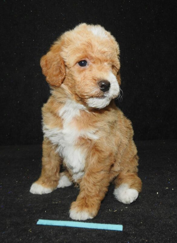 Tucker is an AKC Miniature poodle stud that we are excited about. He sports a Dark Red color with the white socks and chest making him a very sharp looking stud which when bred to select females in our program will create some very awesome looking Goldendoodles and Labradoodles. He is a lover and charms everyone he meets Look for his pups to be highly intelligent, very friendly and be prepared for his pups to draw a lot of attention when out on walks. If your looking for a smaller power packed package take a hard look at Tucker’s pups. Tucker weighs 13#