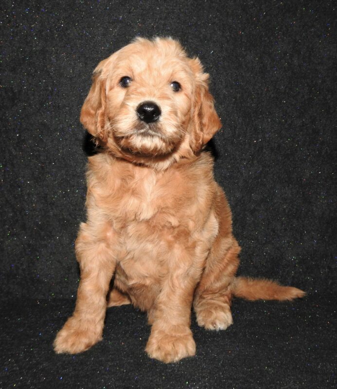 Gage is a Moyen Poodle a cross between a Standard Poodle and a Miniature Poodle Gage was put in are program to downsize the dogs! He weighs 40# and his pups should weigh approx. 35-60# and his puppies would be classified as large miniatures or a medium size dog! We are very excited about Gage as he is very Intelligent and sports an awesome temperament. Look for Gage’s pups to be very quick to train, eyecatchers for sure and producing a medium sized dog! We look for Gage to become one of our most popular studs!!