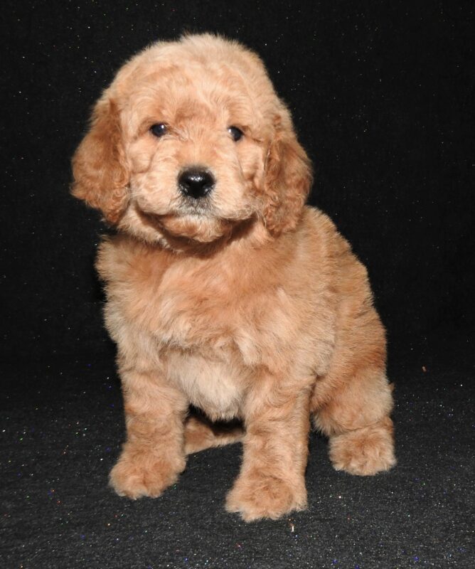 Gage is a Moyen Poodle a cross between a Standard Poodle and a Miniature Poodle Gage was put in are program to downsize the dogs! He weighs 40# and his pups should weigh approx. 35-60# and his puppies would be classified as large miniatures or a medium size dog! We are very excited about Gage as he is very Intelligent and sports an awesome temperament. Look for Gage’s pups to be very quick to train, eyecatchers for sure and producing a medium sized dog! We look for Gage to become one of our most popular studs!!