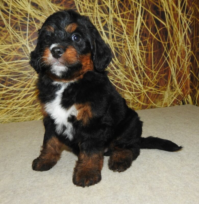 Bear is an awesome miniature poodle. He weighs approximately 11.5 lbs and is 11 inches tall. He is a tri-colored and is very easy going. He has a want to please you attitude! we have added him for our Bernedoodle program ONLY! Look for his puppies to be very intelligent, fast learners, and very easy on the eyes.