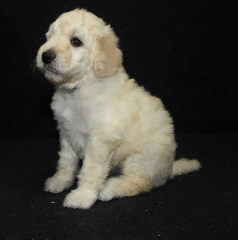 F1b English Medium size Goldendoodle. Mature weight 40-60 lbs. Will sport a semi-curly to curly non shedding coat.