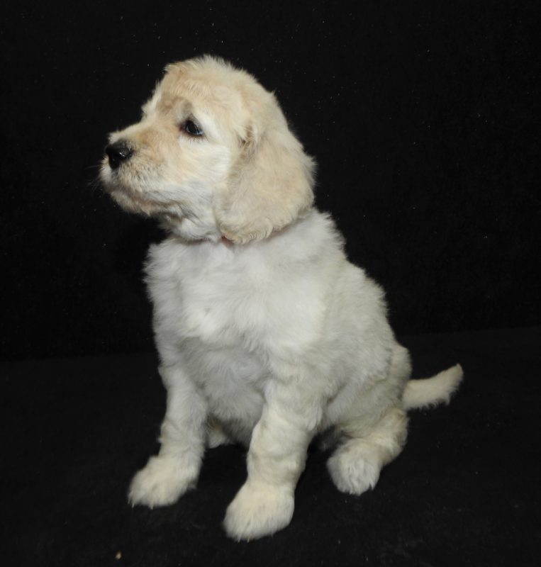 F1b English Medium size Goldendoodle. Mature weight 40-60 lbs. Will sport a semi-curly to curly non shedding coat.