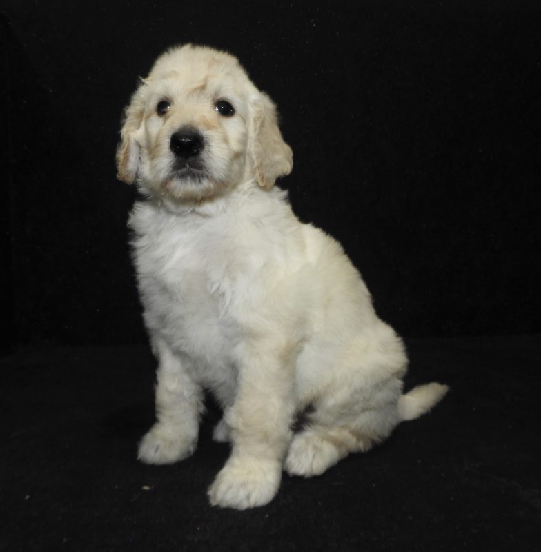F1b English Medium size Goldendoodle. Mature weight 40-60 lbs. Will sport a semi-curly to curly non shedding coat.