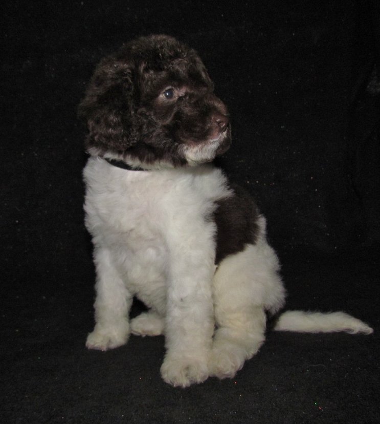 Beautiful Australian Labradoodle chocolate and chocolate and white party colored labradoodles bred to have low to non-shedding fleece type coats. These pups should mature out at 35-45# females and 45-55# males.Maggie is out of 2 of are outstanding dogs with great reputations for health, teperment, and intelligence. Brandy and Remington are her Stud and Dam! These should be awesome pups that are quick to learn and eye catchers for sure! Reserve your puppy today with a $200.00 deposit and a puppy application!!