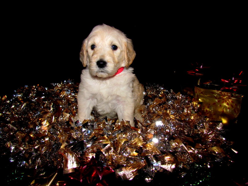 Maggie was born 10-16-2011 and is a english creame teddybear goldendoodle, They will have soft light apricot fleece coats that should be low to non shedding, they are out of our akc poodle (Raven) and our akc English Golden Retriever (winchester) should be a awesome litter! More pics coming at 4-5 weeks of age! Reserve yours now!