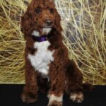 Tucker is an AKC Miniature poodle stud that we are excited about. He sports a Dark Red color with the white socks and chest making him a very sharp looking stud which when bred to select females in our program will create some very awesome looking Goldendoodles and Labradoodles. He is a lover and charms everyone he meets Look for his pups to be highly intelligent, very friendly and be prepared for his pups to draw a lot of attention when out on walks. If your looking for a smaller power packed package take a hard look at Tucker’s pups. Tucker weighs 13#