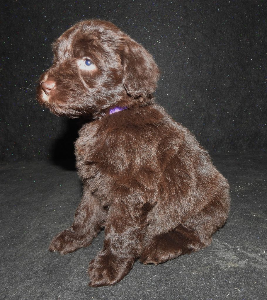 Beautiful Australian Labradoodle chocolate and chocolate and white party colored labradoodles bred to have low to non-shedding fleece type coats.  These pups should mature out at 35-45# females and 45-55# males.Maggie is out of  2 of are outstanding dogs with great reputations for health, teperment, and intelligence. Brandy and Remington are her Stud and Dam!  These should be awesome pups that are quick to learn and eye catchers for sure!  Reserve your puppy today with a $200.00 deposit and a puppy application!!