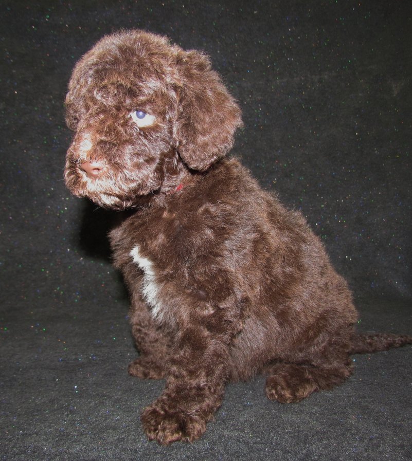 Beautiful Australian Labradoodle chocolate and chocolate and white party colored labradoodles bred to have low to non-shedding fleece type coats.  These pups should mature out at 35-45# females and 45-55# males.Maggie is out of  2 of are outstanding dogs with great reputations for health, teperment, and intelligence. Brandy and Remington are her Stud and Dam!  These should be awesome pups that are quick to learn and eye catchers for sure!  Reserve your puppy today with a $200.00 deposit and a puppy application!!