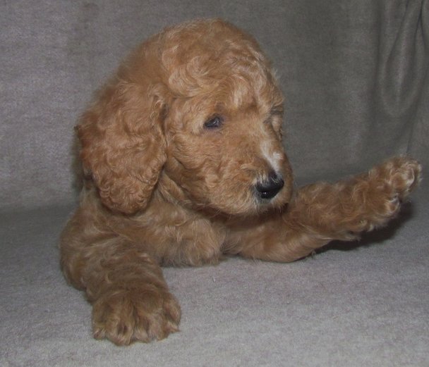 This is Luna’s first litter of pups they are F1b English Goldendoodles and they are everything we had hoped they would be!  Coupled with Ruger’s powerful genetics and his awesome disposition these guys and girls are destined to be nothing but awesome!!  Look for these pups to be eyecatchers and draw lots of attention when out in public!!   These guys will be a great addition to anyones family!!   Reserve yours today they are going fast!!  Should mature out females 60-70# and males 75-90#.  A $200 dollar deposit and a puppy application will reserve yours today!!