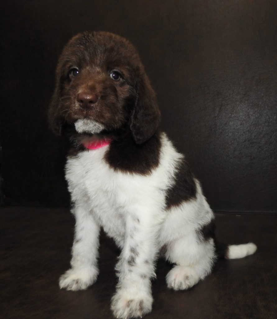 Beautiful Australian Labradoodle chocolate and chocolate and white party colored labradoodles bred to have low to non-shedding fleece type coats.  These pups should mature out at 35-45# females and 45-55# males.Maggie is out of  2 of are outstanding dogs with great reputations for health, teperment, and intelligence. Brandy and Remington are her Stud and Dam!  These should be awesome pups that are quick to learn and eye catchers for sure!  Reserve your puppy today with a $200.00 deposit and a puppy application!!