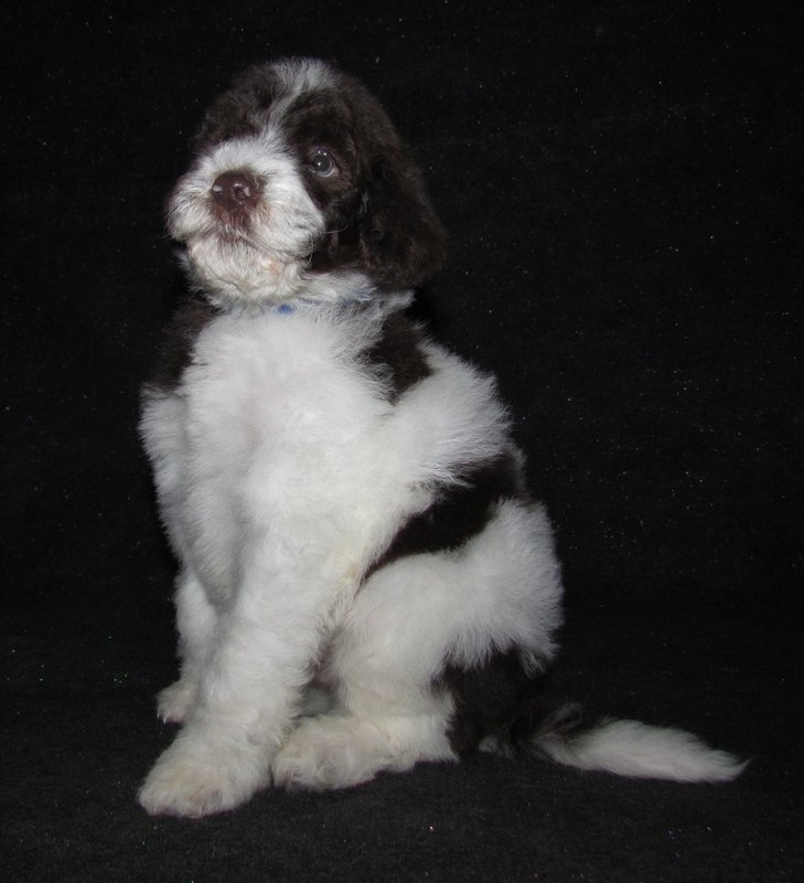 Beautiful Australian Labradoodle chocolate and chocolate and white party colored labradoodles bred to have low to non-shedding fleece type coats.  These pups should mature out at 35-45# females and 45-55# males.Maggie is out of  2 of are outstanding dogs with great reputations for health, teperment, and intelligence. Brandy and Remington are her Stud and Dam!  These should be awesome pups that are quick to learn and eye catchers for sure!  Reserve your puppy today with a $200.00 deposit and a puppy application!!
