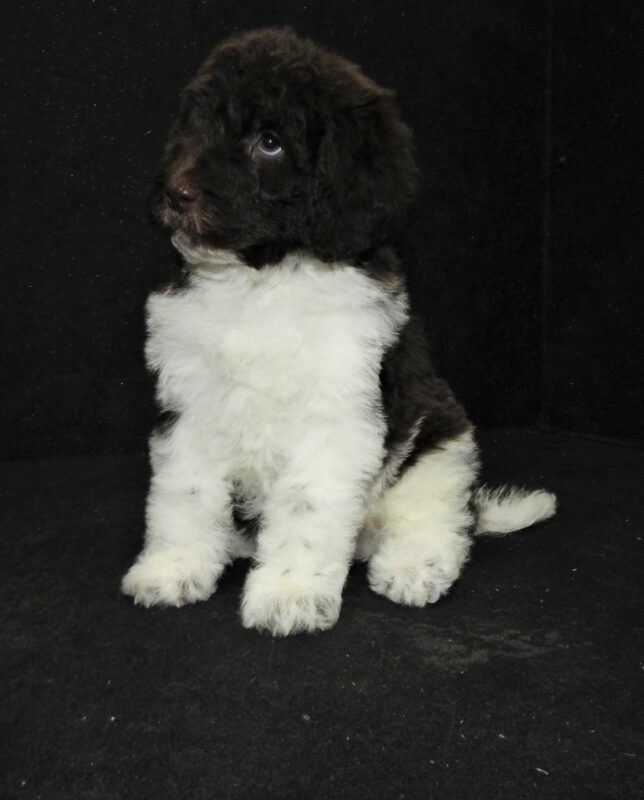 Boone is an Australian Labradoolde weighing in at 32# and has a curly fleece style coat. Boone comes to us from an Australian Labradoodle breeder that is very reputable. He carries the party gene and can produce party colored pups, or chocolate pups with white accents! Look for his pups to be very intelligent and fast to train.