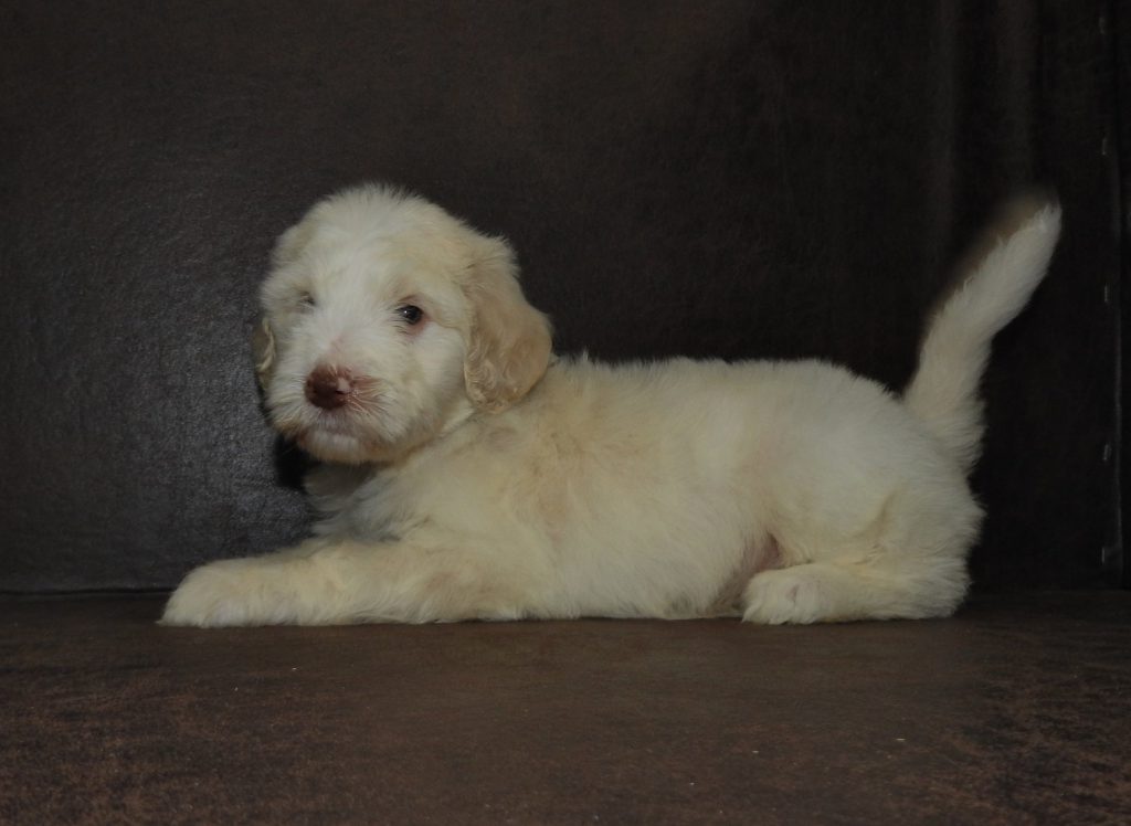 This is Panda’s first litter of English Goldendoodles and what a litter!!  Panda is an awesome addition to are program with an outstanding temperament she weighs aprox. 70# and is a highly intelligent female. Coupled with Remington’s powerhouse dispostion and health track record should make for an awesome set of pups!! Look for these pups to be very intelligent, quick to train, and eyecatchers for sure!!  The chocolate pup and the party colored pup will be priced at $2000 due to the rareness of the colors all others will be $1250.00.  Reserve your puppy today by submitting a puppy application and a $200.00 non-refundable deposit.  Pa. customers add 6% for PA. sales tax and pay pal customers add an additional 3% for using paypal.