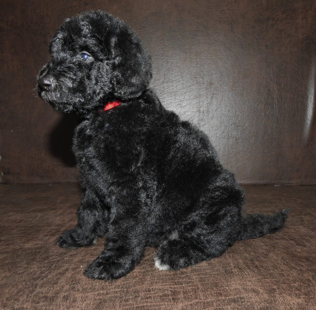 This is Panda’s first litter of English Goldendoodles and what a litter!!  Panda is an awesome addition to are program with an outstanding temperament she weighs aprox. 70# and is a highly intelligent female. Coupled with Remington’s powerhouse dispostion and health track record should make for an awesome set of pups!! Look for these pups to be very intelligent, quick to train, and eyecatchers for sure!!  The chocolate pup and the party colored pup will be priced at $2000 due to the rareness of the colors all others will be $1250.00.  Reserve your puppy today by submitting a puppy application and a $200.00 non-refundable deposit.  Pa. customers add 6% for PA. sales tax and pay pal customers add an additional 3% for using paypal.
