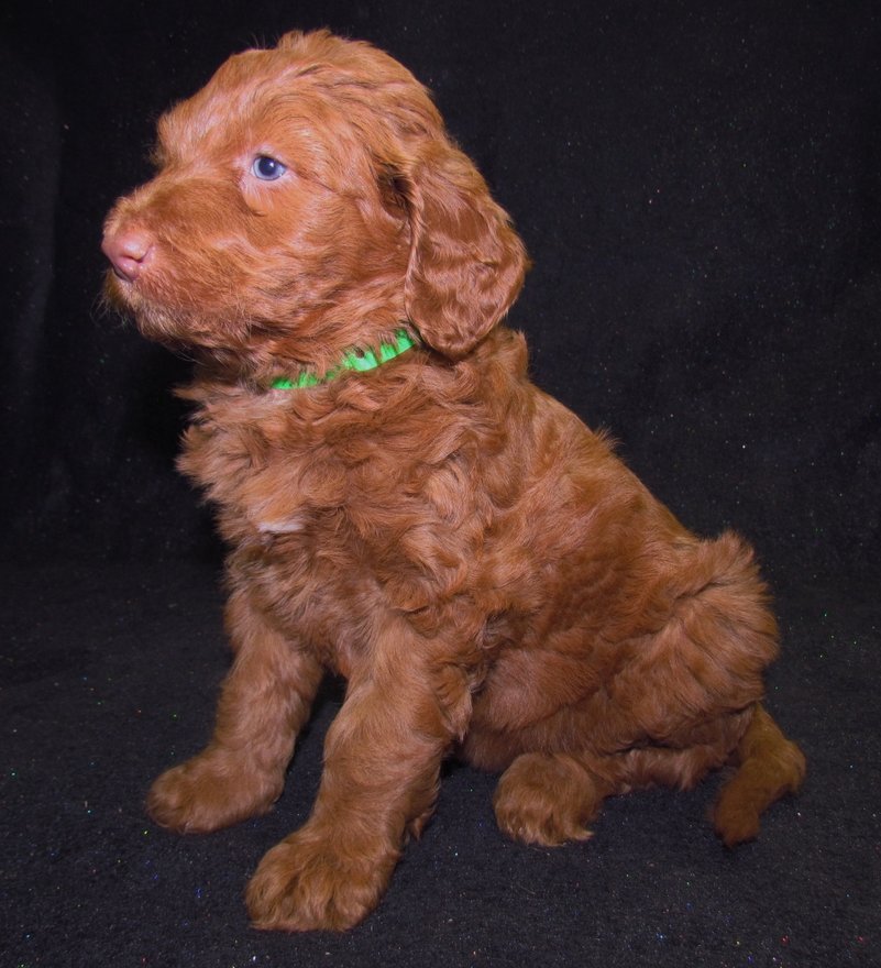 Sadie’s puppies were born on January 16 and are all red in color they will be F1b Labradoodles with low-to non-shedding coats and our out of two fantastic dogs! Look for these pups to be fast trainers and eye catchers for sure!! More pics to come at 5-6 weeks of age!! They should mature out at aprox. 55-85#.