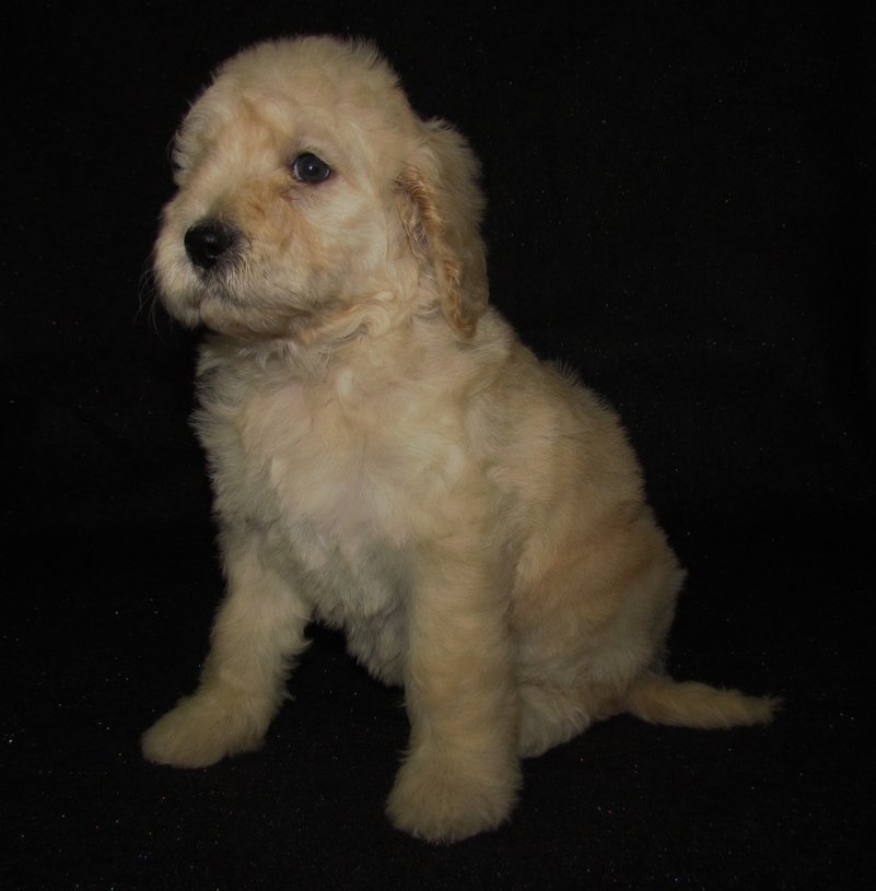 These puppies were  born 05/30/2014 and are  english creame F1b teddybear goldendoodles,  They  will have  a soft light apricot,or white cream fleece coat that should be low to non shedding, They are out of our akc poodle (Raven) and our F1 English Goldendoodle Ringo and should be an awesome pup!!  More pics coming at 5-6 weeks of age! Reserve yours now!