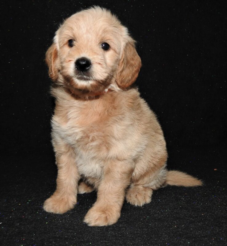 Raven is an English F1 Goldendoodle she is 50% English Golden Retriever- 50% Standard Poodle. She weighs approximately 60#. she has a very easy going soft made disposition and is very intelligent! Raven is a new dog in our program that we are very excited about! Look for her pups to be eyecatchers for sure that are quick learners with great disposition’s.