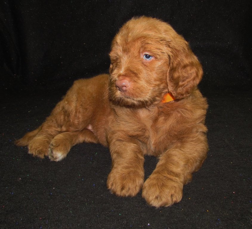 Sadie’s puppies were born on June-6th  and are all red in color they will be F1b Labradoodles with low-to non-shedding coats and our out of two fantastic dogs!  Look for these pups to be fast trainers and eye catchers for sure!!  More pics to come at 5-6 weeks of age!!  They should mature out at aprox. 55-85#.