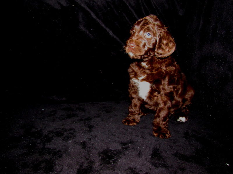 Beautiful Chocolate F1 Labradoodle with a White marking on her chest, this pup is going to mature out with a very curly low to non shedding coat, She has a easy going super temperment! She will mature out around 60# and should be a fast trainer!! Make her part of your family today by putting a $200 deposit down along with a puppy application will reserve her for you!! Sorry Shelby has found her forever home she is SOLD!