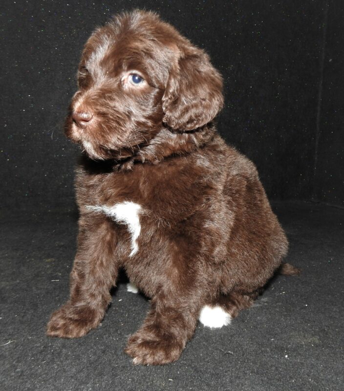 Drake is an AKC Standard Poodle and is a new stud in are program we are very excited about, is a large dog weighing in about 80# and is very intelligent with a happy go lucky easy going temperament!! His Dam is a beautiful Black and white tuxedo Standard Poodle and his Sire is a Chocolate-White party colored male both very good looking dogs! We are looking forward to what Drake can bring to our program look for his pups to be eyecatchers with lots of frame, fast trainers, and awesome coats!!