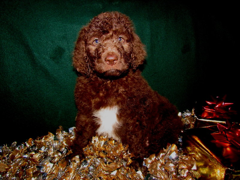 Kia is a beautiful F1 Labradoodle and is a full sister to Bella only a yr. older. Her litters when bred to Remington have been mostly mixed colors- some blacks, cremes, and chocolates. Coates have been from very curly to semi-curly with reviews from past pup that have been excellent! Check out some of her past pups on our facebook link under the photo section. She loves to retrieve and also loves to swim! Look for her pups to be highly intelligent with a great easy going want to please attitude that sports the beautiful non-shedding fleece style coats that our Labradoodles our famous for!!!