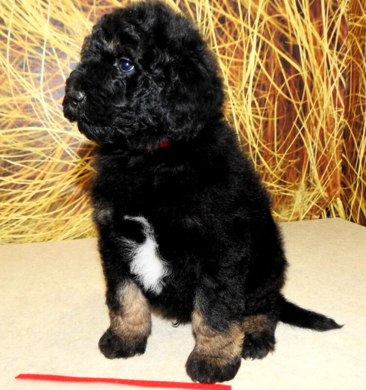 Gander is an AKC miniature poodle that weighs in at 17#. He has an excellent temperament and is very intelligent. Gander should produce litters that are approximately 50% tri-color and 50% blue merle. He has been purchased predominantly for our Bernedoodle program. Look for his puppies to be eyecatchers for sure